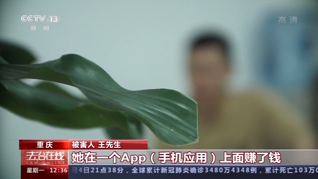 被害人 王先生: 她就晒怎么出去玩啊,旅游啊,天天都是吃得好,海鲜啊这些,我就问她,你天天玩这么好,哪里有钱玩这些。她就说她在一个App(手机应用)上赚了钱,她就给我发了很多截图过来,哪天赚了多少钱。