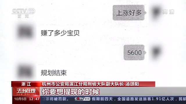杭州市公安局滨江分局刑侦大队大队长 苏浩: 一开始是投进去,然后钱还能取出来,确实感觉是有收益,三番五次之后投注就越来越大。
