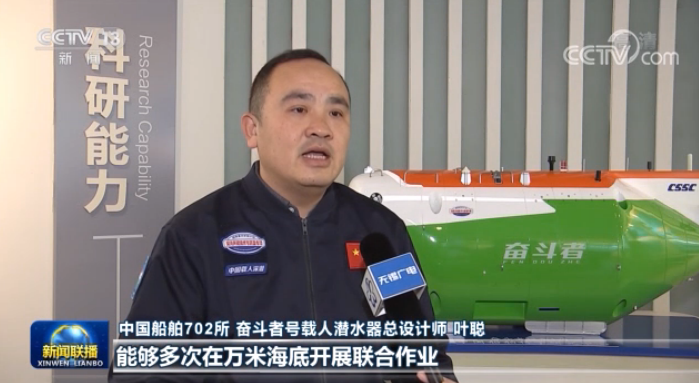 中国船舶702所 奋斗者号载人潜水器总设计师 叶聪: 能够多次在万米海底开展联合作业,和中国载人深潜精神是密不可分的。习总书记在中央经济工作会议上的重要讲话给我们指明了下一步的方向,载人深潜会面向更多的应用场景,争取更加系统化的科研成果。