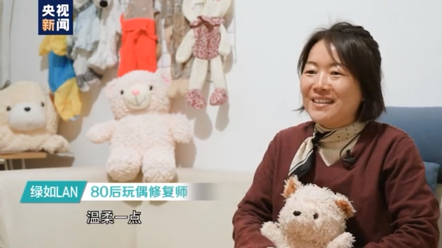 玩偶修复师 绿如LAN: 很多人都很难理解还会有人花钱来修复旧玩偶,他为什么不去买个新的,但是我很理解这些主人。我是绿如LAN,是一名专门给娃娃看病的“医生”,这些玩偶主要来自全国各地,最大的有60多岁,大部分玩偶在二三十岁左右。