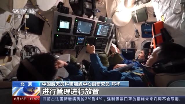 中国航天员科研训练中心副研究员 邓华: 神十二乘组进入到我们的核心舱之后,航天员需要把货包分类的进行管理进行放置,所有的这些流程都需要在我们核心舱模拟器里面开展各项训练。