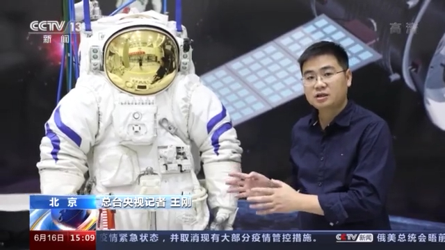 总台央视记者 王刚: 这是空间站出舱活动程序训练模拟器的现场,大家看到的这套航天服是航天员在地面上使用的常压训练服。航天员在飞向太空之前,他们要在地面完成一系列的操作,包括单肌训练,还有出舱活动程序的训练。大家现在看到了这个场景就是天和核心舱节点舱的一个训练场景,航天员可以在里面完成出舱活动前的一些准备,包括开舱门这样一些活动的训练。