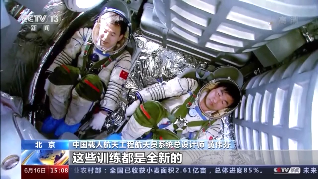 中国载人航天工程航天员系统总设计师 黄伟芬: 航天专业技术训练和飞行程序模拟训练,这是我们航天员训练的重中之重,包括空间站技术训练、机械臂的训练等,这些训练都是全新的,都是针对空间站任务特点来开展。训练的目标也是要使航天员在思想、身体、心理、知识储备和技能方面都要具备执行任务的能力。