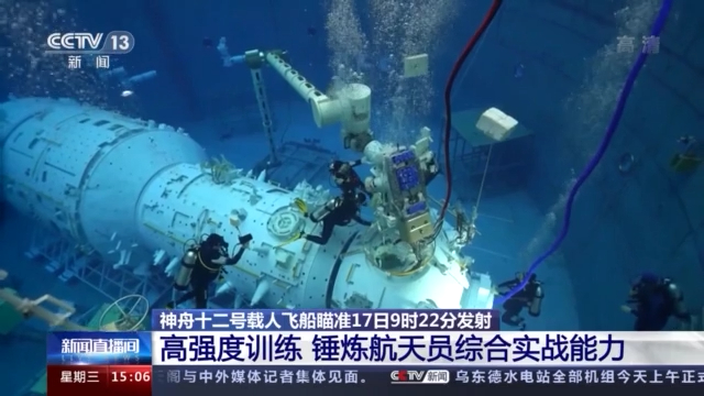 这是此前航天员的训练画面,是在模拟太空失重环境、进行中性浮力水槽训练时的场景。从2017年3月开始,航天员就全面转入了空间站的任务准备阶段。他们要经过八大类、百余个课目的高强度训练,以及近百次的工程研制和实验活动,不断强化综合实战能力。