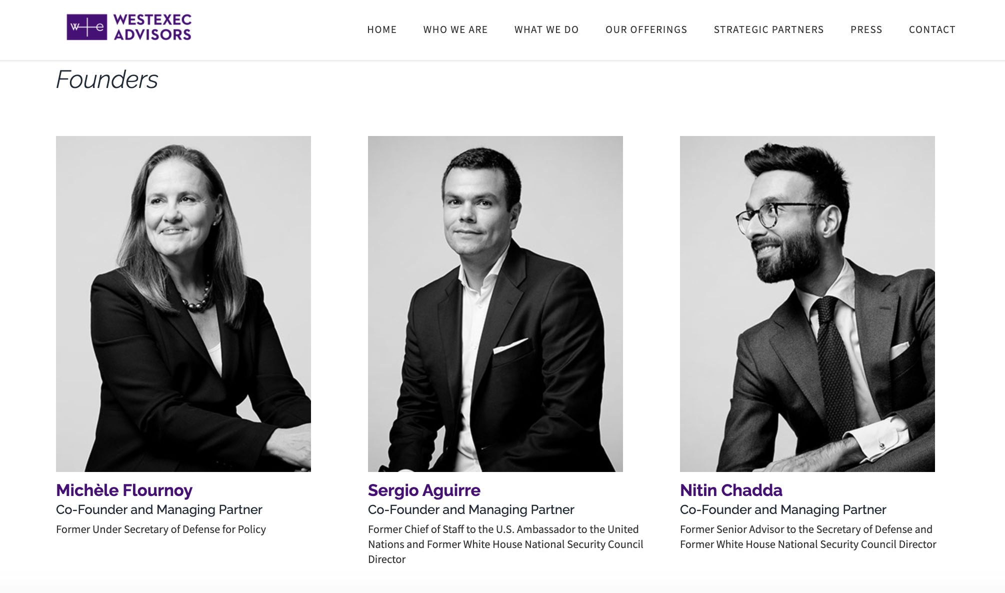 此外,美国国家情报总监海恩斯、国防部印太安全事务助理部长拉特纳、总统新闻秘书普萨基等人,在进入政府前也都在WestExec担任过高级顾问等职务。