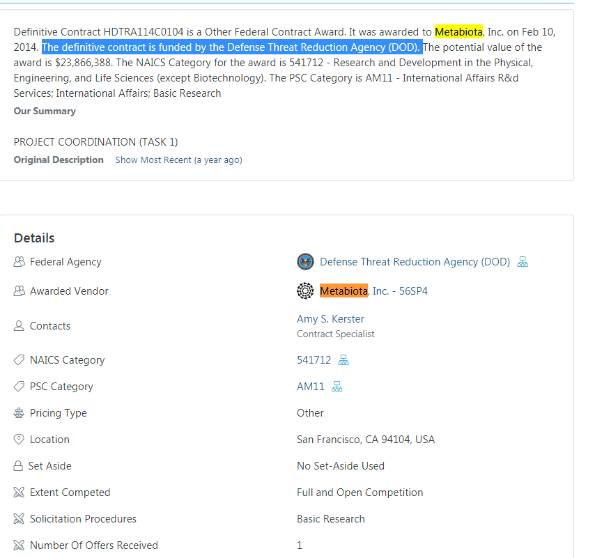 而Metabiota则和美国军方有紧密合作。