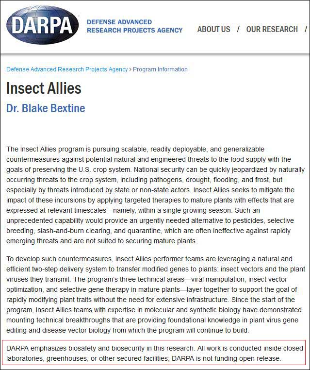 对于受到争议的“昆虫联盟”项目,DARPA在其官网发布的项目介绍称,目前这一项目的所有研究都在封闭实验室、温室或其它设施内进行。不过,它特别强调一点,那就是将不公开项目资金信息。