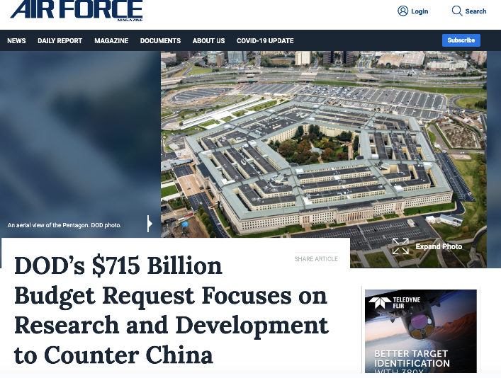 在美国《空军杂志》看来,出台这份注重研发的预算,就是为了“对抗中国”。