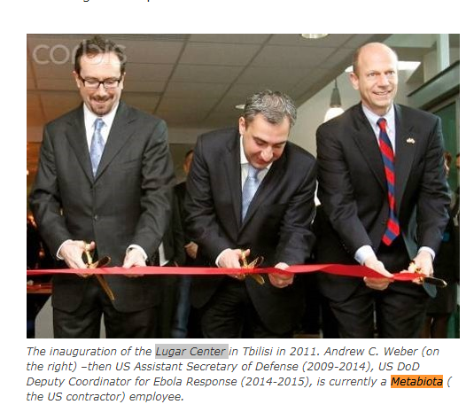 而2011年,美国在格鲁吉亚首都第比利斯近郊设立的生物实验室“卢加尔公共卫生研究中心”的剪彩仪式上,就出现了奥巴马政府时期负责生化防御项目的国防部助理部长安德鲁·韦伯的身影。