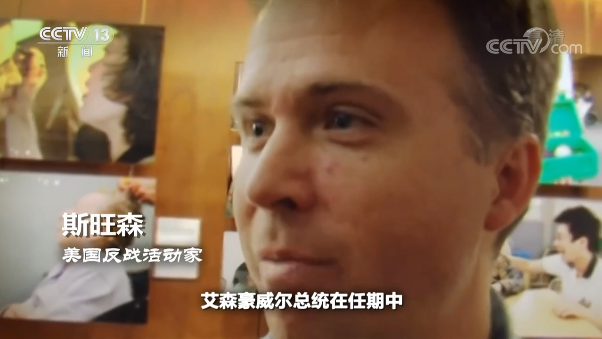 美国反战活动家 斯旺森: 艾森豪威尔总统在任期中,曾鼓吹战争,但有一点他是非常正确的,我认为他不会预料到,他口中的军工复合体会发展成今天这样,我将其描述为银行家(对军火商)的年度资助。