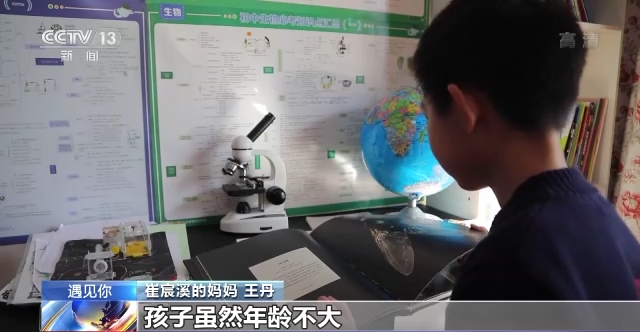 崔宸溪的妈妈 王丹:他对这方面的兴趣来源于书籍,对(昆虫)这个东西很喜欢,他就观察这个小动物,观察这些昆虫,他养过蚂蚁,而且种类非常多,还养过蜘蛛,养过独角仙,就这类的昆虫有很多,我们特意给他买了专业的显微镜。