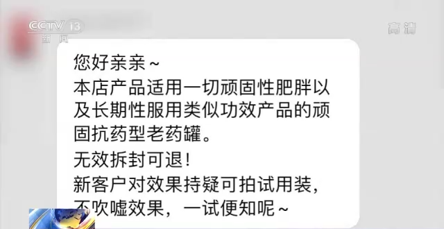 被害人 王先生:当时客服跟我说,就吃一个疗程,吃10天的量,10天瘦5斤,他就说无效包退款。当时客服说是这个药它里面好像有种成分可以加快我们的肠胃蠕动,促进消化,反正说得蛮神的。我当时比较急切想要去减肥,就相信了客服的话。