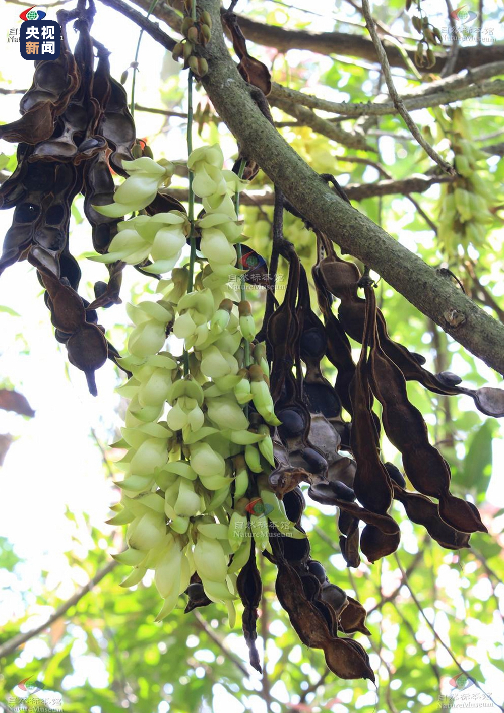图2 现生白花油麻藤(Mucuna birdwoodiana)的花序与荚果↑↑↑