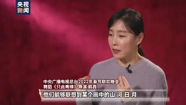 舞蹈《只此青绿》导演 韩真:我们编排当中,那些有棱角感的动作,他们能够联想到某个画中的山、河、日、月,或者是山石的错落,以及层峦叠嶂的延绵不断的山峰。