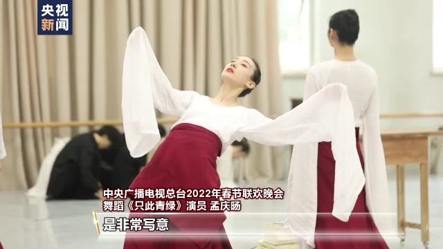 舞蹈《只此青绿》演员 孟庆旸:正常情况下,女生下腰在其他的角色当中总是向上的一种状态,但在这个角色中,是非常写意,要把气息松弛下来。