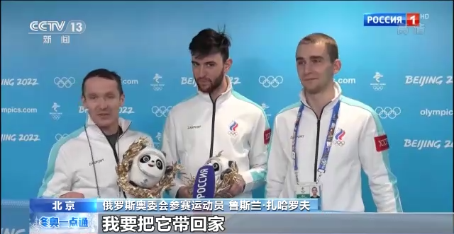 俄罗斯奥委会参赛运动员 鲁斯兰·扎哈罗夫:这是非常棒的纪念品,我要把它带回家。我有两个小孩,现在一个已经有(冰墩墩)了,我需要努力再赢一个。
