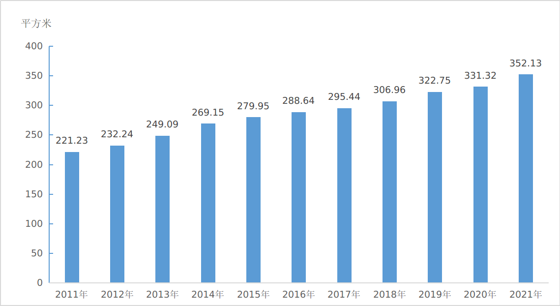 △2011-2021年全国平均每万人群众文化设施建筑面积