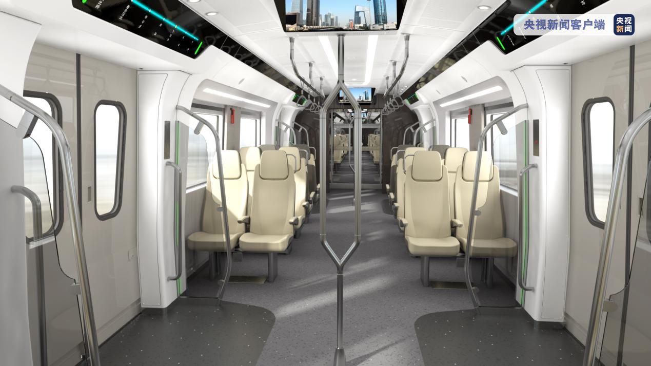 项目设计最高速度地上段为160公里/小时、地下段为120公里/小时,充分统筹了运行速度、工程条件和建设成本。采用市域D型车8辆编组,每列列车定员约1814人(每平方米6人标准),横排布置座席400余个,乘坐舒适度较高,结合客流预测,计划初期最小行车间隔2分44秒。