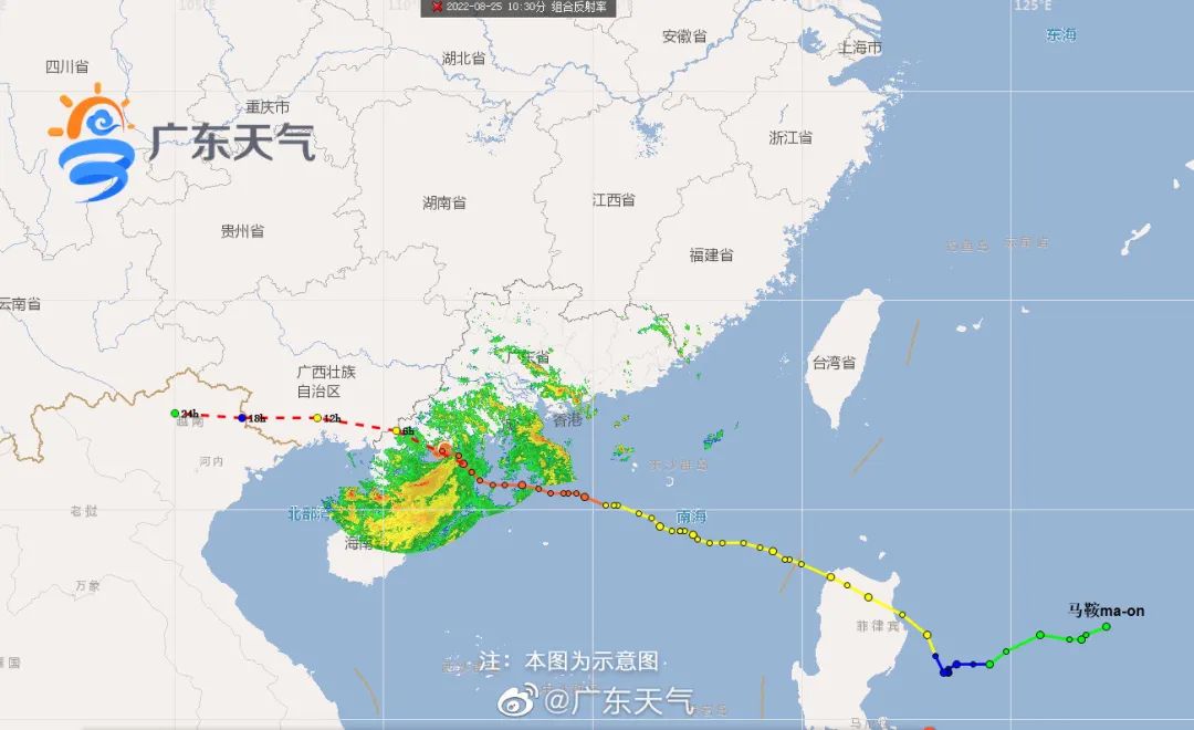 预计,“马鞍”将以25公里左右的时速向西北方向快速移动,穿过茂名,25日下午进入广西,强度逐渐减弱。