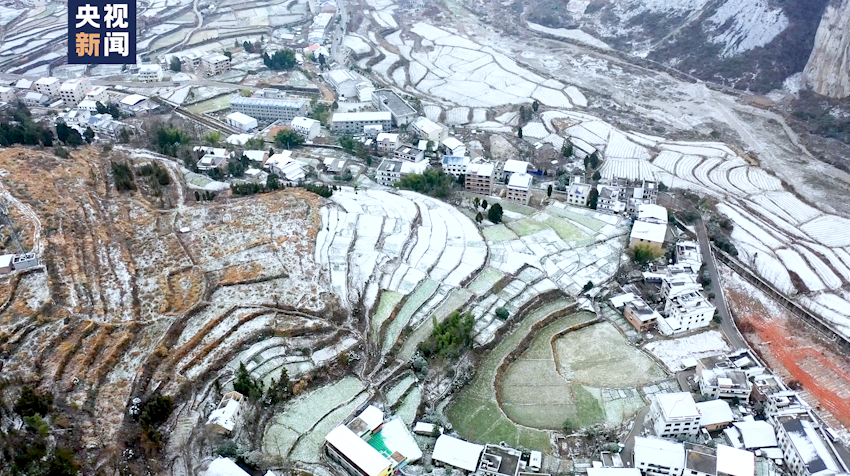 从昨晚开始,湖南涟源湄江风景区纷纷扬扬落下飞雪。从空中俯瞰,雪花轻盈落下,远处山峰丛林挂上了晶莹纱衣,梯田、民居、山峦交相辉映,天地间一片静谧悠然,是冬季独有的浪漫诗意。