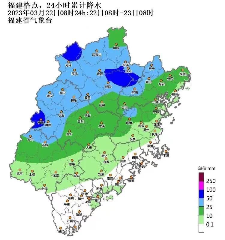 受低层切变东移及南风急流影响,22日到24日,福建全省迎来今年首场强对流和暴雨过程,过程累计雨量80~150毫米,局部可达200毫米;雷雨时局地伴有短时强降水、8~10级雷雨大风或冰雹等强对流天气。