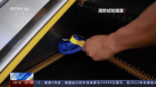 江苏扬州市消防救援支队姚相宇:一些孩子乘坐扶梯时,喜欢把脚放在电梯侧面的围裙板上蹭。试验中,消防人员将一只“洞洞鞋”贴在扶梯的侧面,这时感觉到,鞋子与扶梯的侧边产生很大摩擦力。而相对鞋底更硬的旅游鞋,与扶梯金属侧板的摩擦力则小很多。