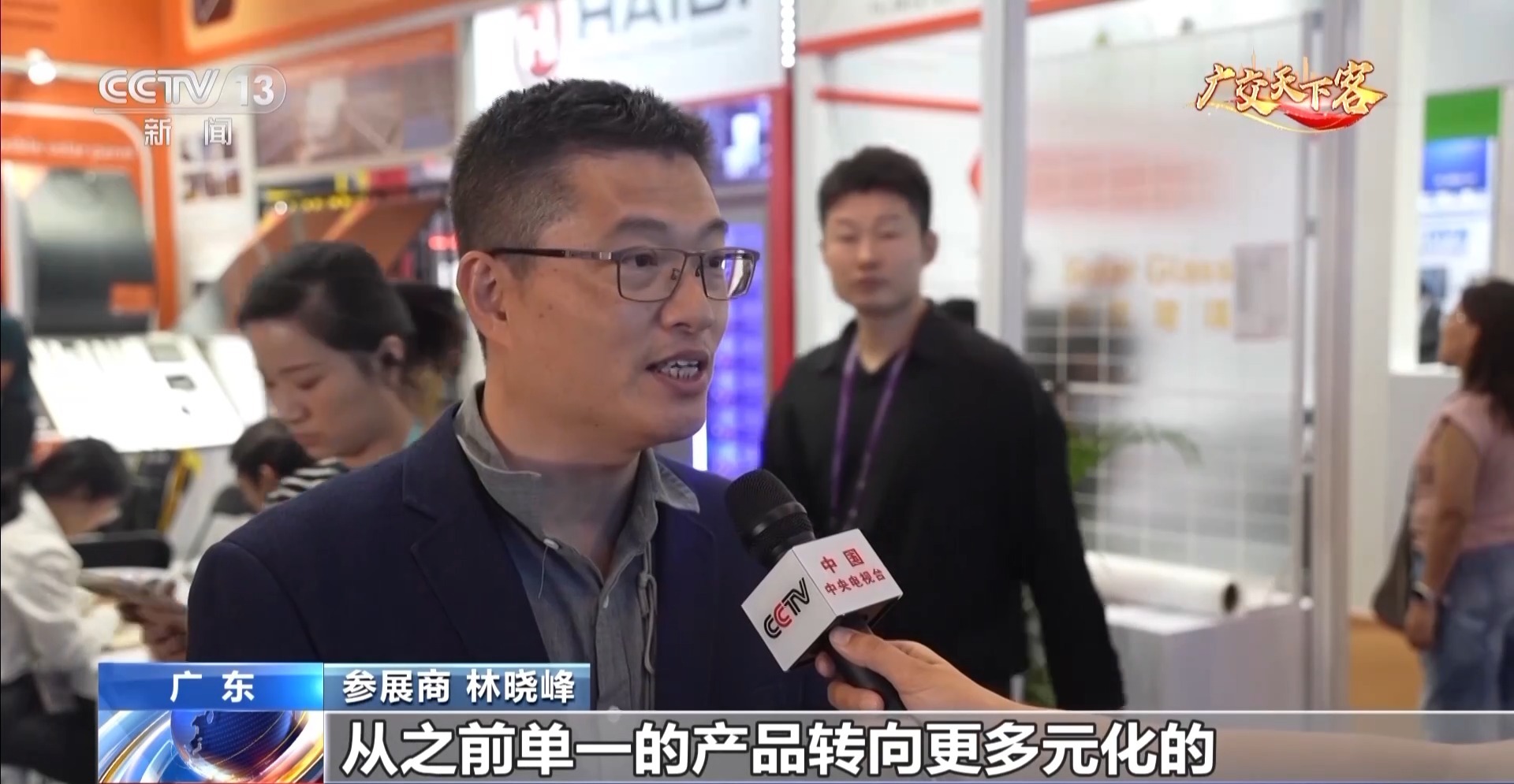 参展商 林晓峰:广交会的新能源产品从之前单一的产品转向更多元化的其它类型的太阳能板、太阳能充电器,比如说轻量化的、可折叠的、柔性的。