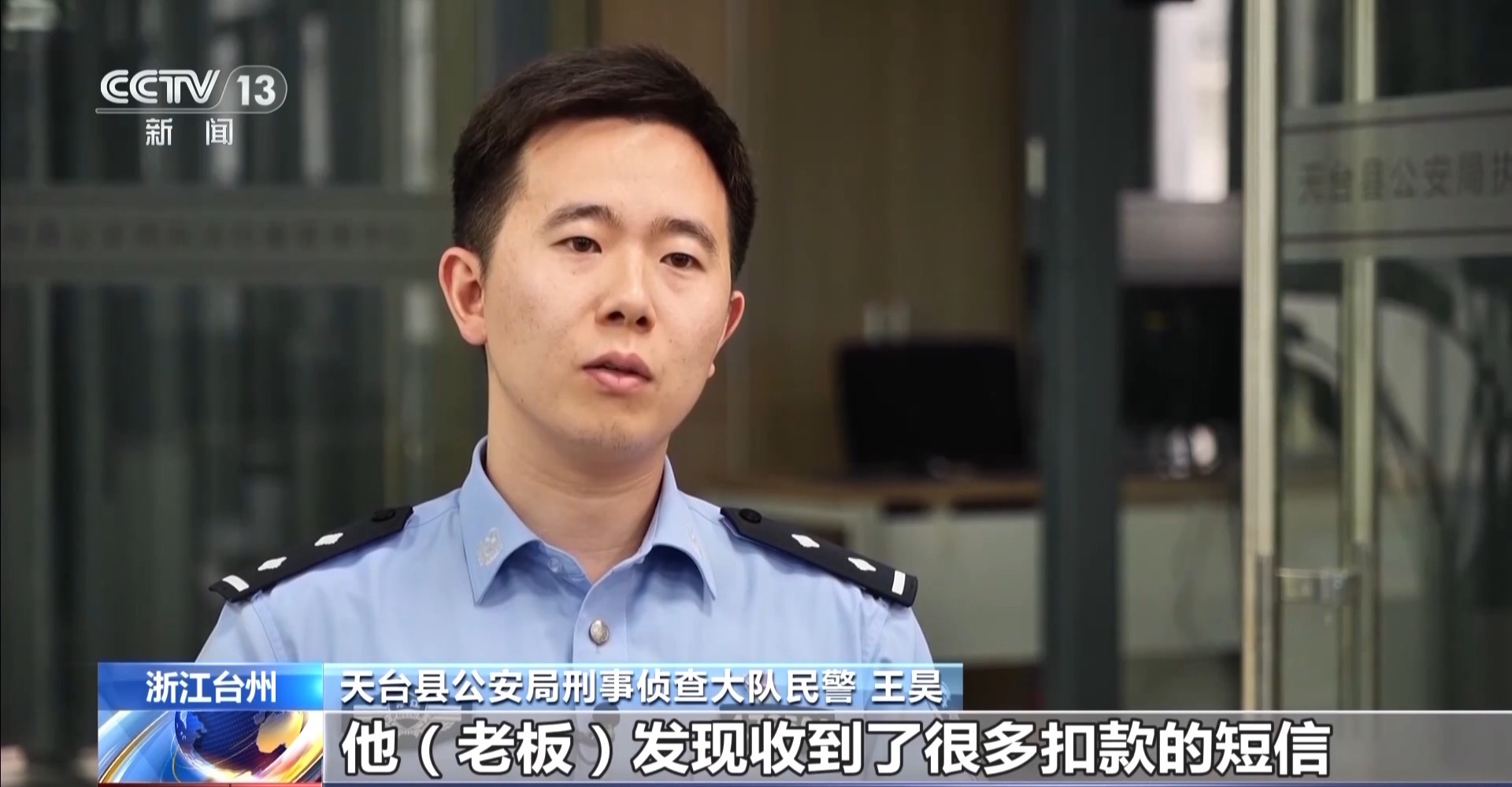 天台县公安局刑事侦查大队民警 王昊:老板下飞机后发现收到了很多扣款的短信,询问了财务,发现是财务被冒充的老板诈骗了。