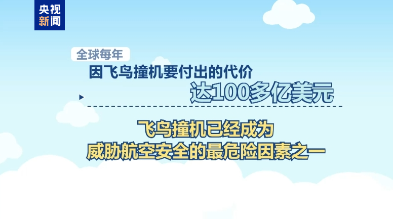 据国际民航组织统计,全球每年发生飞鸟撞机事件两万多起。全球每年因飞鸟撞机要付出的代价达100多亿美元。飞鸟撞机已经成为威胁航空安全的最危险因素之一。