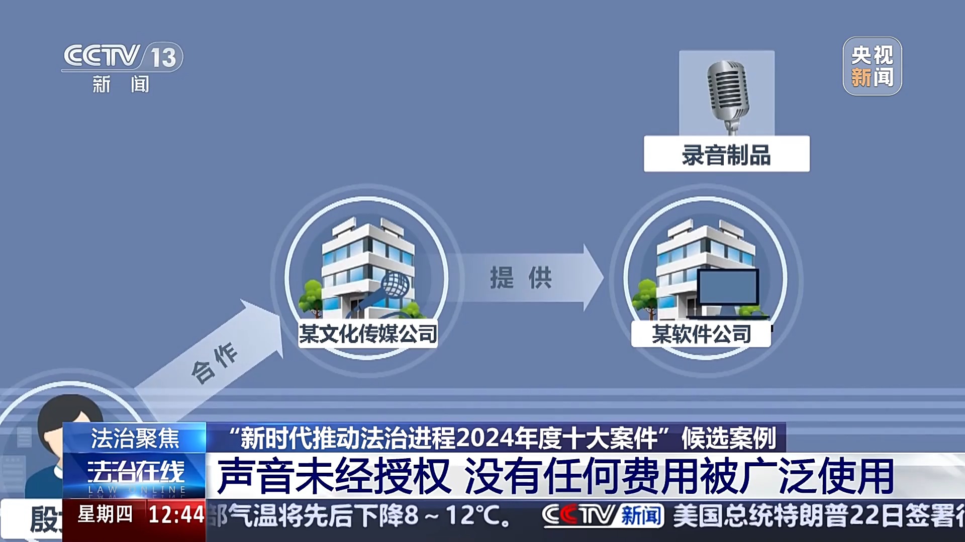 法院审理认为,被告公司未经原告许可使用了原告声音,构成对原告声音权益的侵犯,其侵权行为造成了原告声音权益受损的后果,应承担相应的法律责任。2024年4月23日,北京互联网法院对案件作出判决。几家被告公司向原告赔礼道歉,并向原告赔偿经济损失25万元。