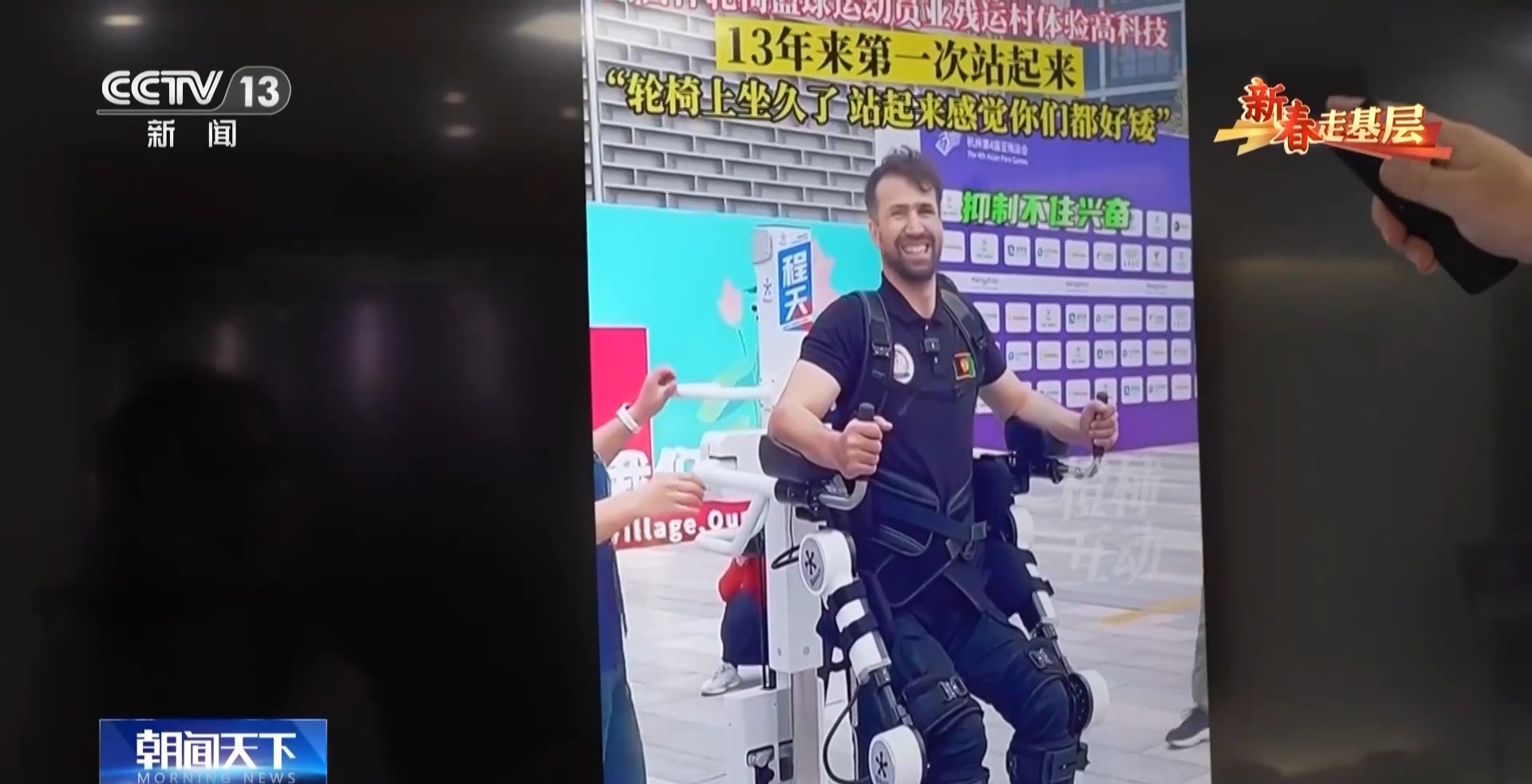 总台新春走基层的记者就来到了杭州一家科技公司,他们生产的外骨骼机器人可以帮助残障人士站立起来,通过康复训练实现自主行走。