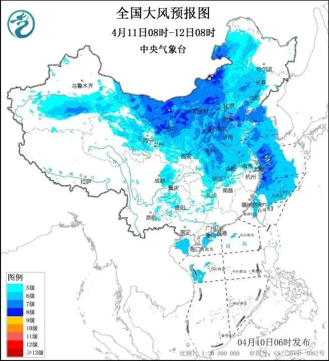 预计11日至12日,我国中东部地区将出现强风、降温、沙尘天气,内蒙古东部和东北地区东部将出现暴雪,南方将出现今年以来最强风雹天气。