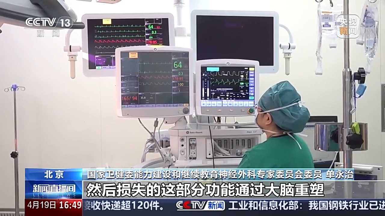 国家卫健委能力建设和继续教育神经外科专家委员会委员 单永治:在患者颈部迷走神经上放一个神经刺激器,通过电刺激的方式,电信号传输到大脑,然后损失的这部分功能通过大脑重塑来恢复。我们主要针对偏瘫,尤其是手的功能的障碍患者,对全身比如说腿和上肢的这种功能障碍也是有效的。