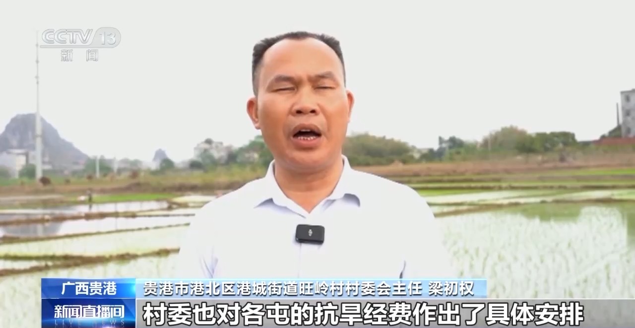 贵港市港北区港城街道旺岭村村委会主任 梁初权:村委也对各屯的抗旱经费作了具体安排,每个屯都有抗旱启动资金,目前我们已经抢插秧苗面积达80%以上。