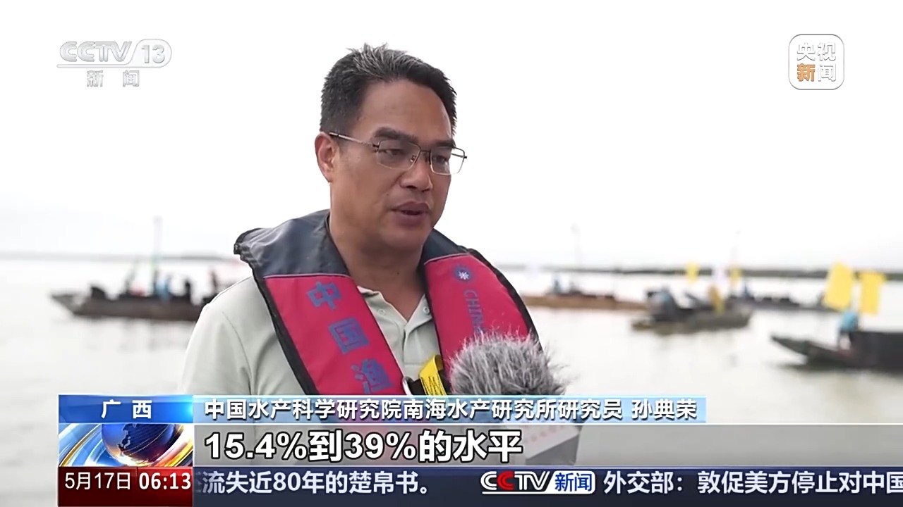 中国水产科学研究院南海水产研究所研究员 孙典荣:虾类的效果特别明显,增殖回捕率达到了15.4%到39%的水平,根据沿岸渔民生产的效益来看,渔民对主要经济品种的捕获效率是提高了10%到15%。