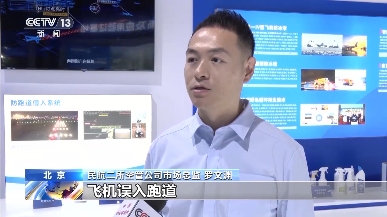 民航二所空管公司市场总监 罗文渊:我们的防跑道侵入系统是目前国内第一套完全国产自主化的防跑道侵入系统。飞机误入跑道导致的跑道侵入事件发生的概率降低70%左右。