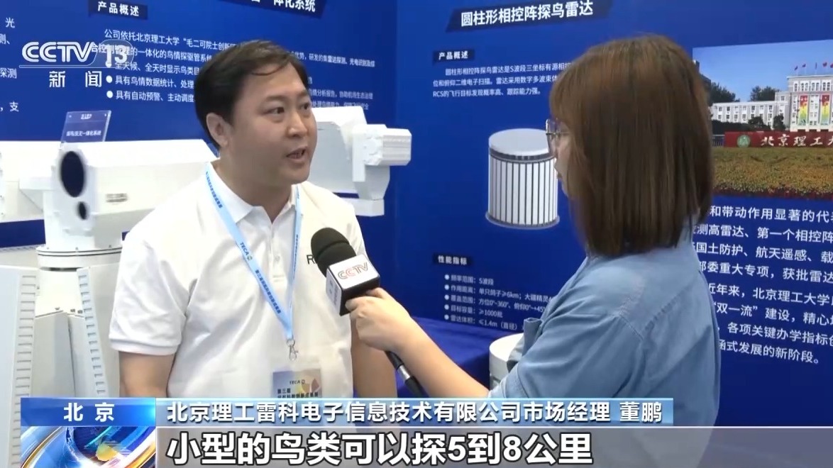 北京理工雷科电子信息技术有限公司市场经理 董鹏:对于小型的鸟类可以探5~8公里,对于鸟群可以探到12公里以上,对于这些大鸟中鸟小鸟探测的准确率能达到99%以上。
