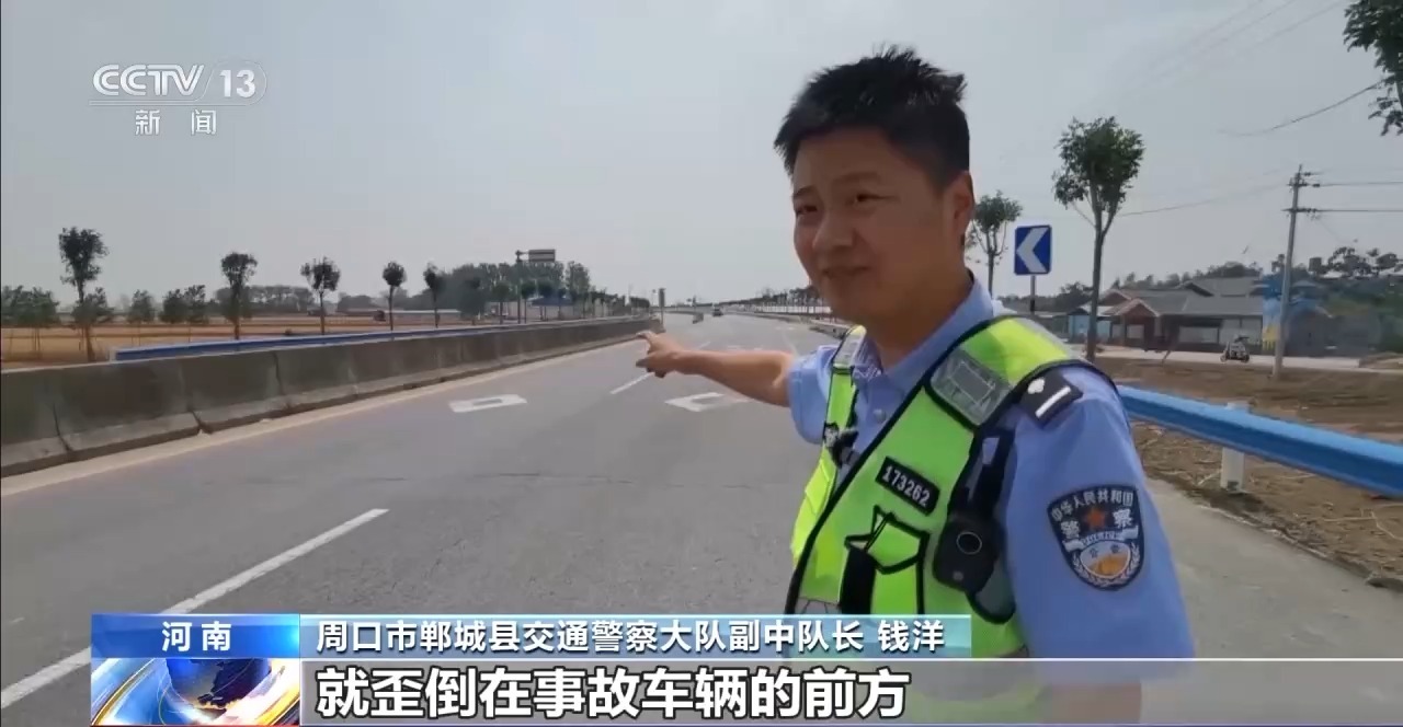 河南省周口市郸城县交通警察大队副中队长 钱洋:当时事故车辆就停在这里,被撞的两轮电动车就歪倒在事故车辆的前方,大概撞飞出去四五米的距离。我们到达现场经过简单询问之后,是因为李某疏忽观察,追尾了前方的两轮电动车。