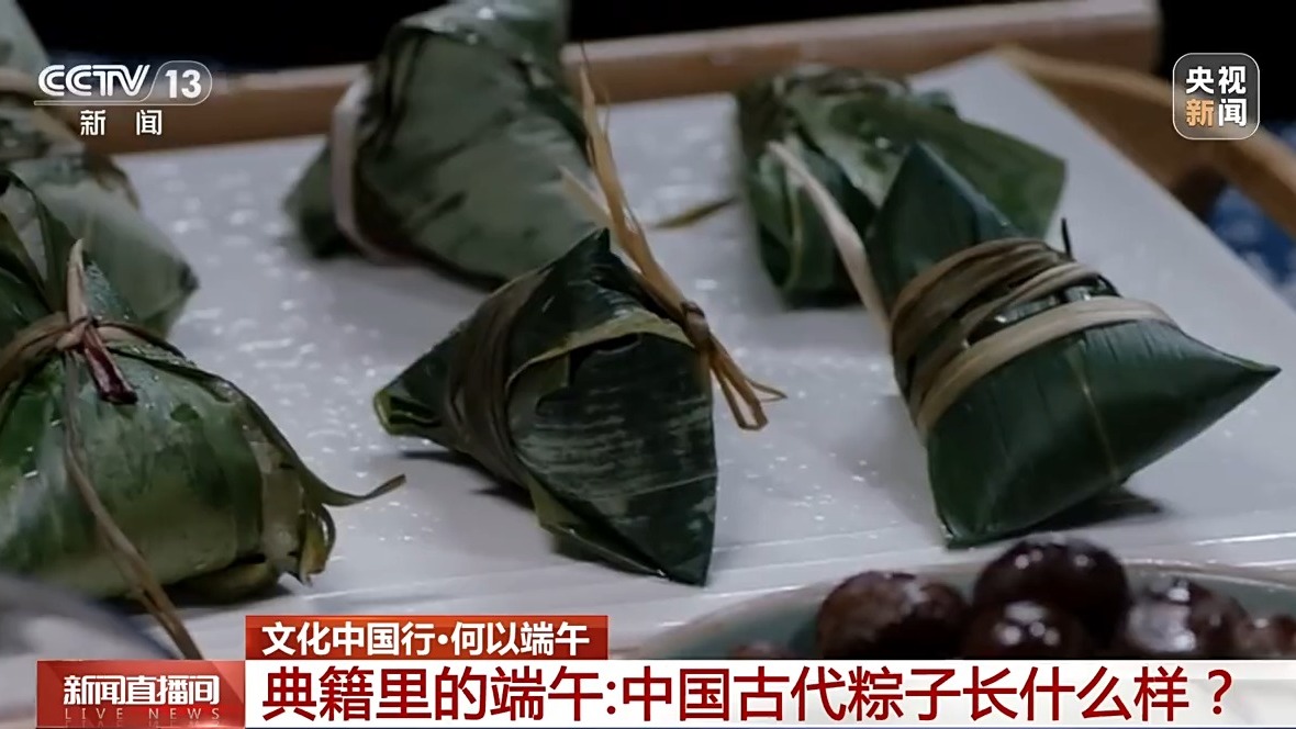 总台央视记者 于茜:端午节,家家户户都吃粽子,我们中国的粽子,无论是外形,内馅儿和名目,它的演变和发展已经有上千年的历史了。从古籍的描述中,我们也可以看到,中国古代的粽子到底长什么样。