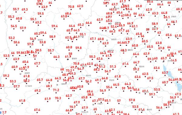 在太阳光照的加热下,地表热得更为突出,12时至13时,山西、河南、河北、山东多地地表温度超过60℃,河南沁阳、伊川、焦作、宝丰、汝阳、山西榆社地表温度超过70℃,热度同期少见,其中沁阳、焦作、榆社打破当地6月上旬地温最高纪录。
