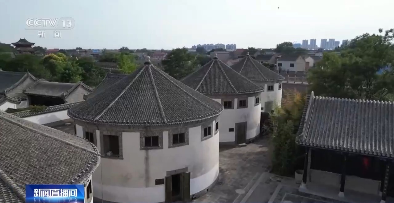 鹤壁市浚县文旅融合发展服务中心工作人员 苏晶晶:这座粮仓上面设有14个通风口,墙体的厚度就达到了1米左右,墙体底部有一个小口,粮仓一圈也是有两个,里面有一张很密的网,熏仓药通过这个网传递到中间,起到一个除虫的作用。