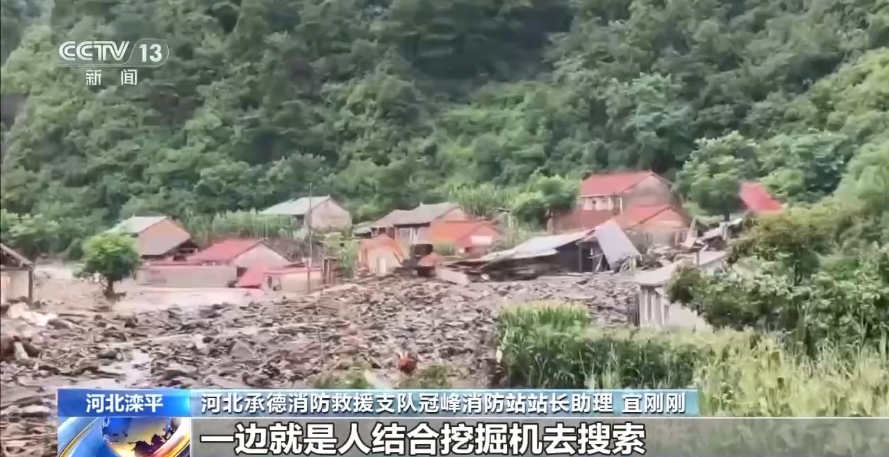 河北承德消防救援支队冠峰消防站站长助理宜刚刚:从上面挖到房子差不多有两米多、三米深,一边是人结合挖掘机去搜索,一边是搜救犬结合生命探测仪进行搜索。