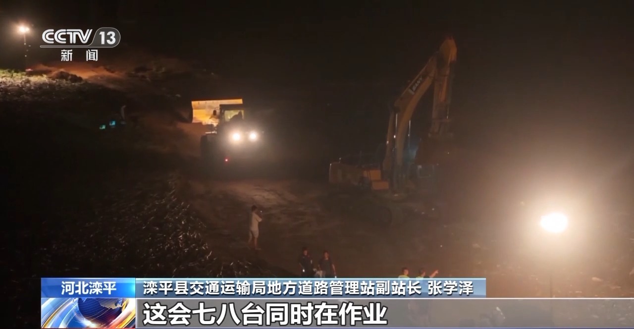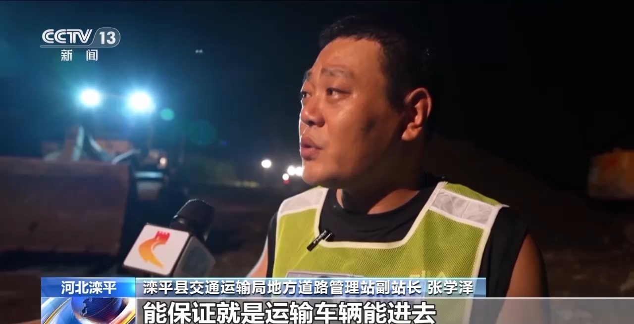 在滦平县道一处水毁路段,28日晚上11点半,交通运输局的工作人员正争分夺秒进行抢修。
