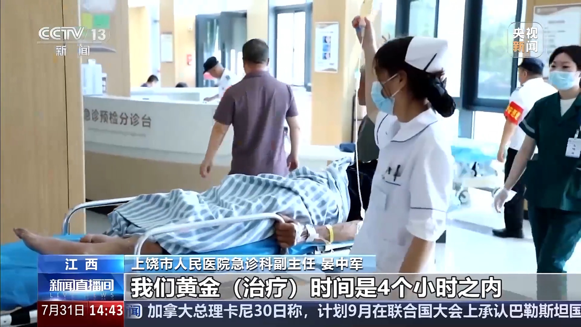 上饶市人民医院急诊科副主任 晏中军:针对被蛇咬伤的病人,第一时间让病人走绿色通道。被蛇咬伤的病人,黄金治疗时间是4个小时之内。