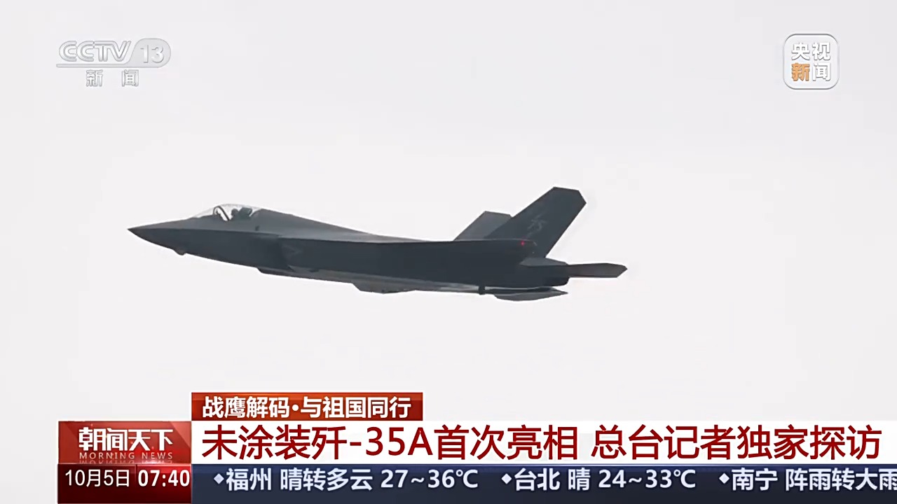 在航空工业沈飞机库,记者近距离观察了一架还没有涂装的歼-35A。