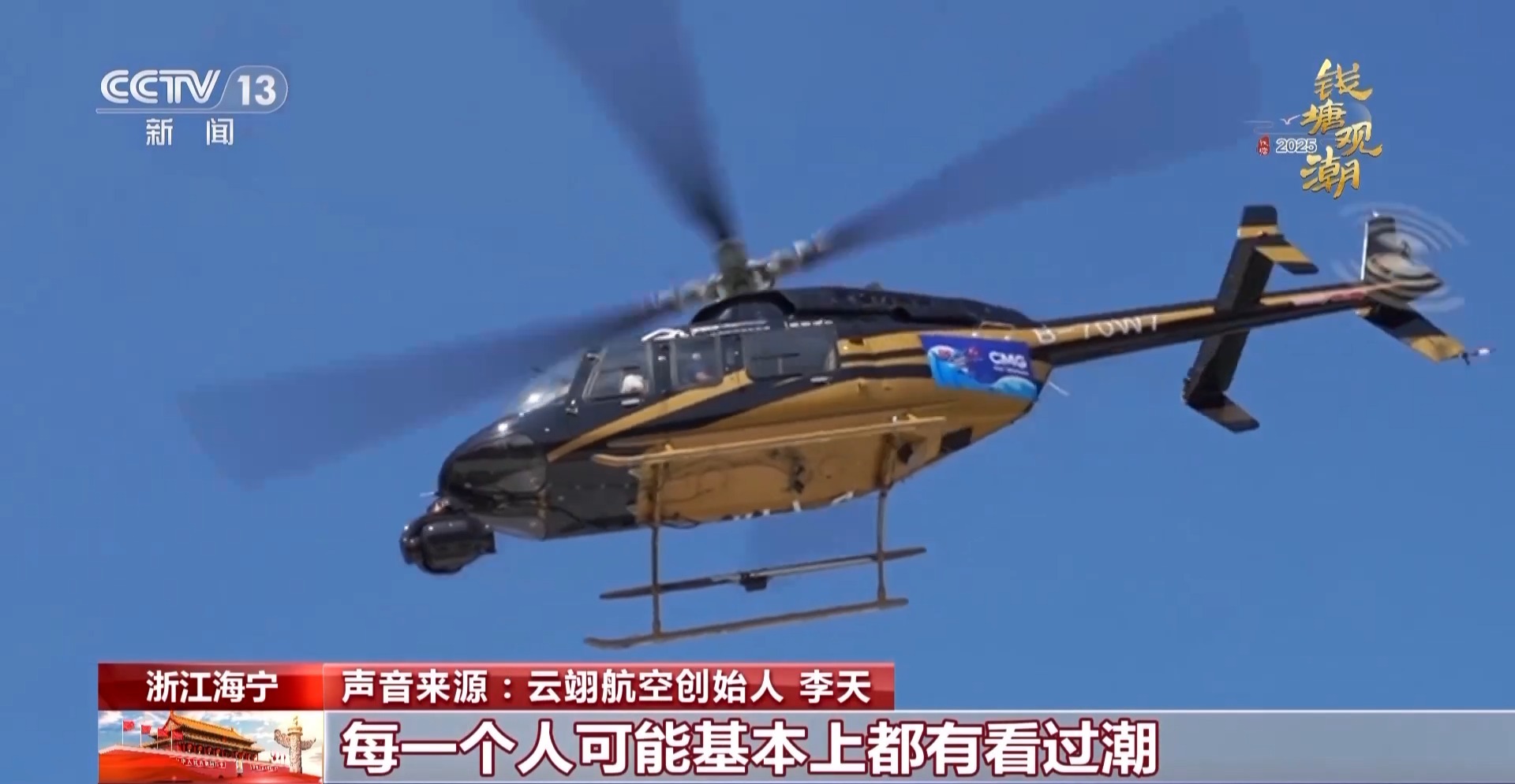云翊航空创始人 李天:我们海宁人可能每一个人都看过潮,但是在空中看了钱塘江潮之后,我觉得观感以及体验是完全不一样的。