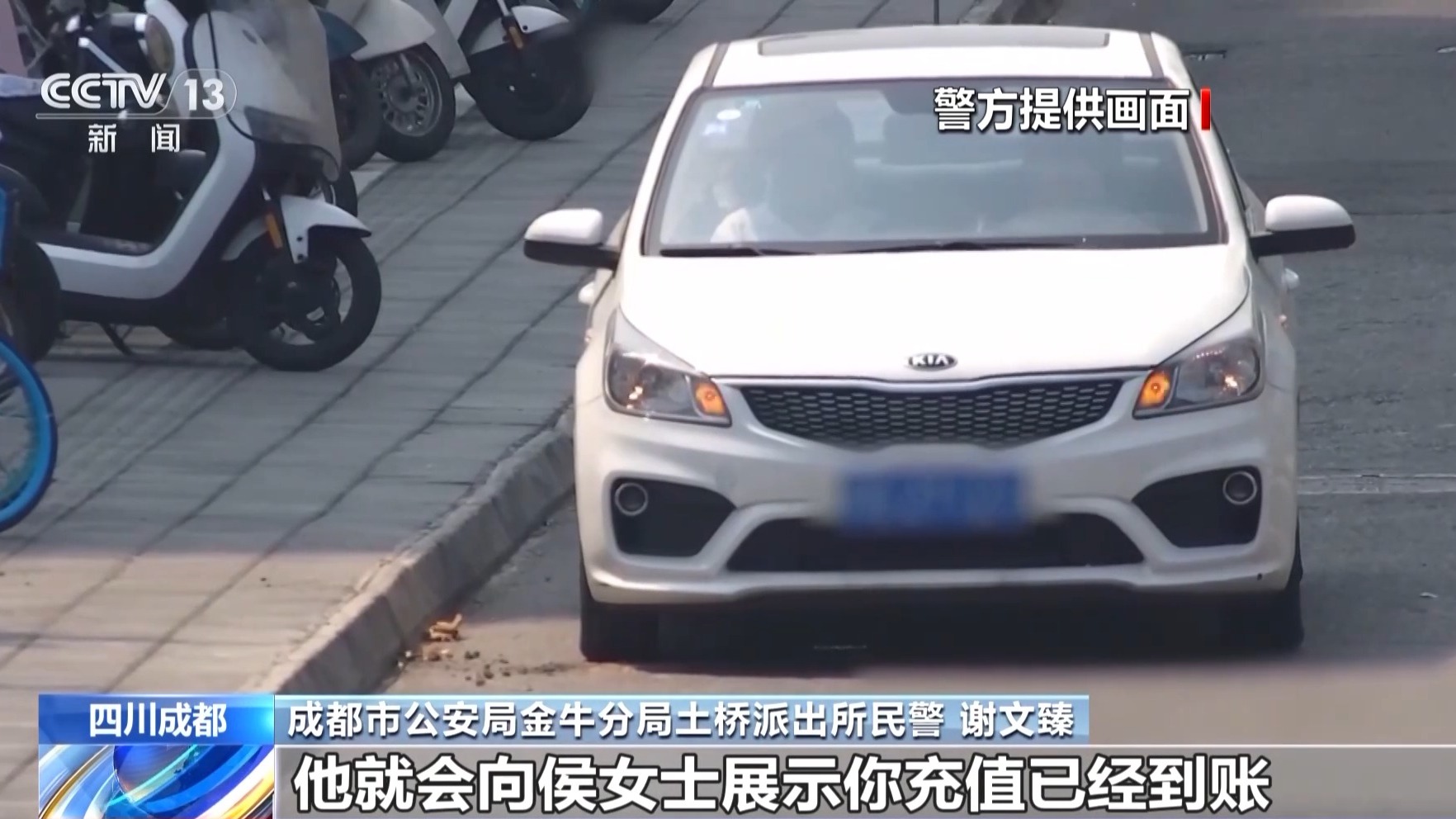 成都市公安局金牛分局土桥派出所民警 谢文臻:骗子安排的所谓工作人员,是和侯女士现场交接,他们在车上交易时,侯女士把现金交给对方,他会向侯女士展示充值已到账,侯女士就相信了,这样交易就完成了。