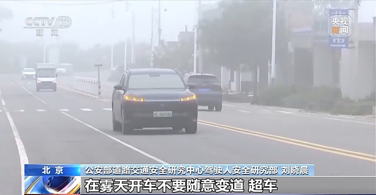 公安部道路交通安全研究中心驾驶人安全研究部 刘晓晨:大家还要注意不要盲目地变道超车,雾天的能见度较低,无法准确地判断车距,又不利于观察相邻车道和对向来车的情况。在雾天开车不要随意变道超车,经过互通出入口或者其他车流密集的区域,要注意提前备刹车,谨防其他车辆突然并入,发生事故。