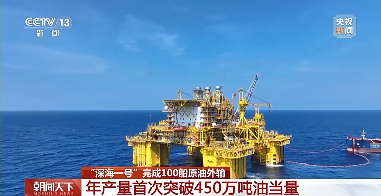总台央视记者 张伟:随着外输油轮“北海新希望”号驶离平台,“深海一号”已完成超65万吨的凝析油外输任务,年产油气量首次突破450万吨油当量。