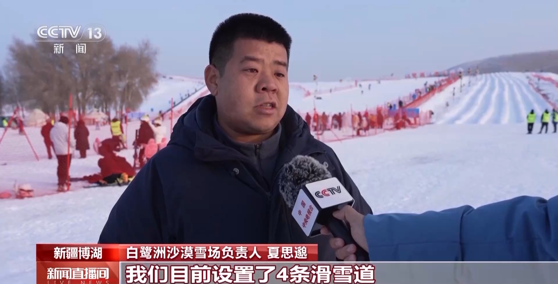 白鹭洲沙漠雪场负责人 夏思邈:我们目前设置了4条滑雪道,还有6条娱乐的雪圈道,后期我们将继续开拓一些冰上的娱乐项目。